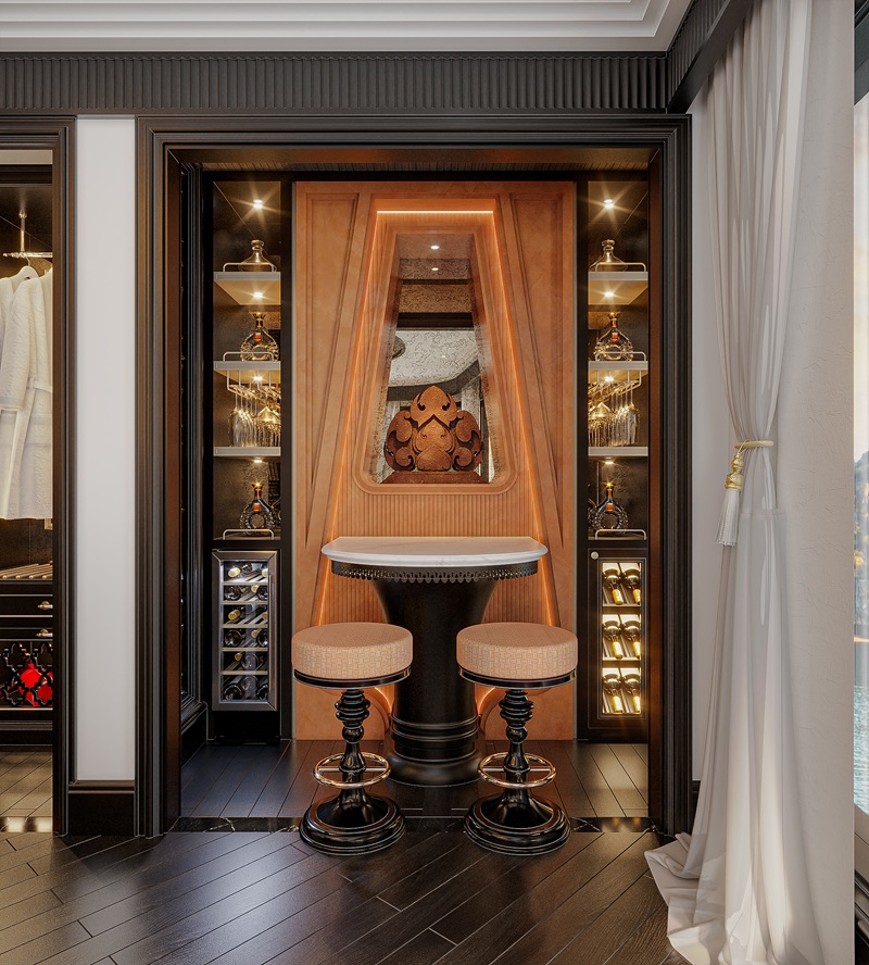 The second most luxurious accommodation aboard the Orient Legacy Cruise, this 44 m2 suite is likened to a sky villa amidst the sea. Located on the second deck, it boasts a unique semi-circular design with panoramic 180-degree ocean views and a spacious 14 m2 balcony equipped with sun loungers and an outdoor jacuzzi. The king-size circular bed stands out like an “island” in a space that is both elegant and cozy overlooking the stunning heritage scenery. Lavish interiors and top-tier amenities include a personal bar with a variety of drinks and snacks, and private balcony breakfast service—all designed for discerning and sophisticated guests, treated like royalty.